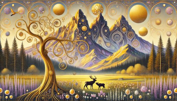 Title: Gustav Klimt Inspired Landscape Featuring the Three Sisters Mountains Photo ID: 72233 |