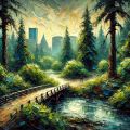 Lush Greens and Urban Skyline: An Expressionist View of Portland