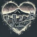 Love in Every Line: Distressed Portland Skyline Heart Illustration