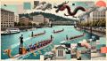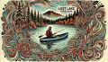 Vibrant Folk Art Rendering of Dragon Boat Racing on Willamette River