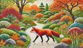 A Vivid Mosaic of a Red Fox Wandering in an Autumnal Garden