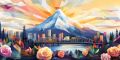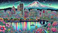 Vibrant Expressionist Art of Portland's Skyline and Mount Hood