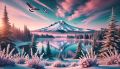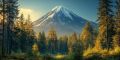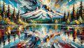 Futuristic Vision of Mount Hood and Mirror Lake in Vivid Strokes