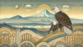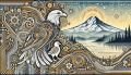 Intricate Art of Eagle and Chick Against Majestic Mount Hood