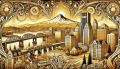 Enigmatic Aerial Depiction of Portland with Klimt-Inspired Golden Swirls