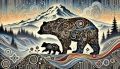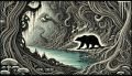 Majestic Black Bear Emerges from Abstract Wilderness Canvas