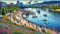 Lively Summer Day at Tom McCall Waterfront Park in Portland, Oregon