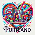 Cosmic Love for Portland: A Vivid Heart-Shaped Cityscape Illustration