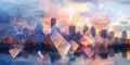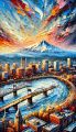 Vibrant Impasto Expression of Portland Skyline and Mount Hood