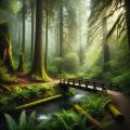 Misty Morning in Forest Park, Portland: A Winding Trail Amidst Evergreens