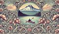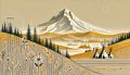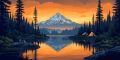 Majestic Sunset Over Mount Hood in a Serene Vintage Illustration