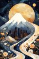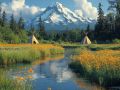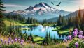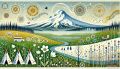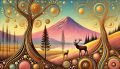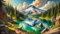 Mirror Lake and Mount Hood: A Surreal Folk Art Fusion