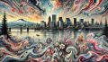 Cubist-Inspired Spectrum: A Vivid Portland Skyline Reflection