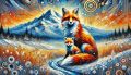 Majestic Red Fox and Cub Against Mount Hood in Palette Knife Art