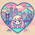 Enchanting Pastel Illustration of Portland Skyline in a Heart
