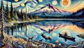 Enigmatic Reflections of Mount Hood at Mirror Lake in Van Gogh's Style