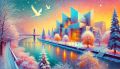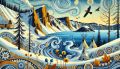 Enchanting Whimsical Winter Landscape with Magical Night Sky