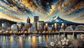 Expressionist Vision of Portland: A Textured Skyline with Natural and Urban Harmony