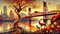 An Enchanting Autumn Evening in Portland's Stylized Cityscape