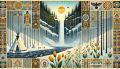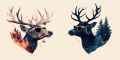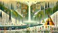 A Symbolic Reflection of Nature: Deer at Silver Falls in Op Art Style