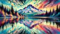 Serene Reflections of Mount Hood Over Mirror Lake in Artistic Vector Style