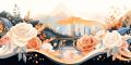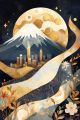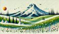 Serene Ukiyo-e Inspired Landscape: Majestic Mountain at Sunset