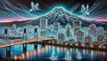 Neon Dreams: A Futuristic Wireframe Vision of Portland's Skyline