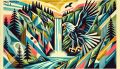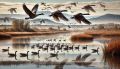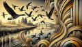 Surreal Flight: Geese Over Tualatin River in an Art Deco Dream