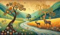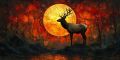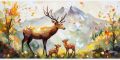 Autumn Majesty: Deer Family Amidst Vivid Palette Knife Landscape