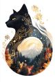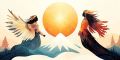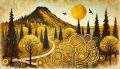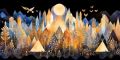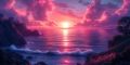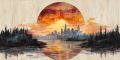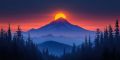 Enigmatic Sunset Over a Mystical Mountain Landscape Illustration