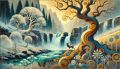 Enchanted Latourell Falls: A Gustav Klimt-Inspired Winter Dreamscape