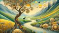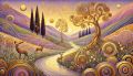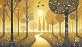 Enigmatic Golden Swirls and Stylized Trees in a Portland Park