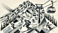 Dynamic Cubism Art of Skiers on Mount Hood's Slopes