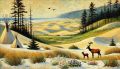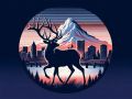 Majestic Paper Mache Elk Amongst Snow-Capped Mountains and Pines