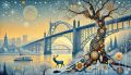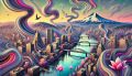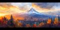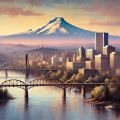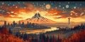 Enchanting Artistic Interpretation of Portland with Majestic Mt. Hood