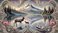 Enchanted Reflections: Mount Hood Amidst Art Nouveau Whorls