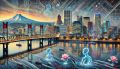 Vibrant Dreamlike Depiction of Portland's Skyline in Pop Surrealism