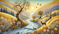 Tranquil Blend of Natural Beauty and Technological Motifs in Art