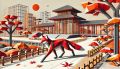 Vibrant and Stylized Artistic Representation of a Fox in Dynamic Poses