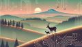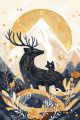 Mystical Deer and Cat in a Golden Mountainous Landscape