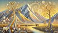 Enigmatic Reflections of Mount Hood in Stylized Symbolic Art
