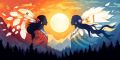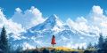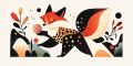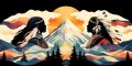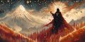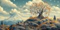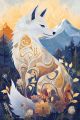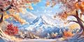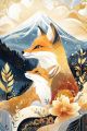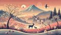 Enchanting Illustration of Foxes amid Mystical Mount Fuji Scenery