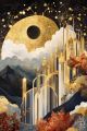 Whimsical Twilight Over Alsea River Inspired by Gustav Klimt