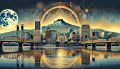 Art Deco Reflections: Portland Skyline and Mount Hood Transformed