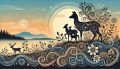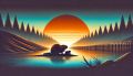 Sunset Serenity: A Beaver and Cub Amidst a Vibrant Landscape