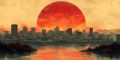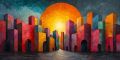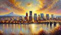 Vibrant Expressionistic Palette Knife Painting of Portland Skyline