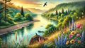 Enchanting Dawn at Willamette River with Lush Florals and Wildlife