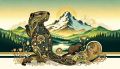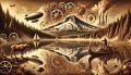 Steampunk Vision of Mount Hood and Mirror Lake Amidst Mechanical Wonders