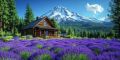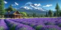 Serene Lavender Fields with Rustic Cabin and Majestic Mount Hood