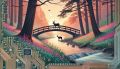 Surreal Dawn at Tryon Creek: Deer, Bridge, and Circuitry Blend